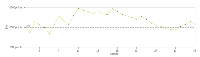 | Name | Elo | Last vs | Infl | E. Gain | E. Avr. | E. W. | E. L. | Games | G % | Ovr % | Udr % | Win | W % | Loss | L % |