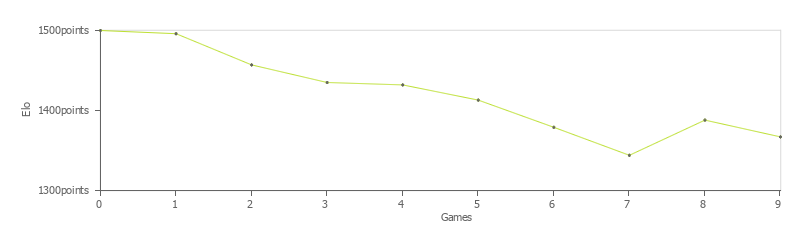 Different opponents: 4 || Average games/opponent: 2.25 || Total inflation: 82 || Games vs overrated: 33% || Games vs underrated: 56%